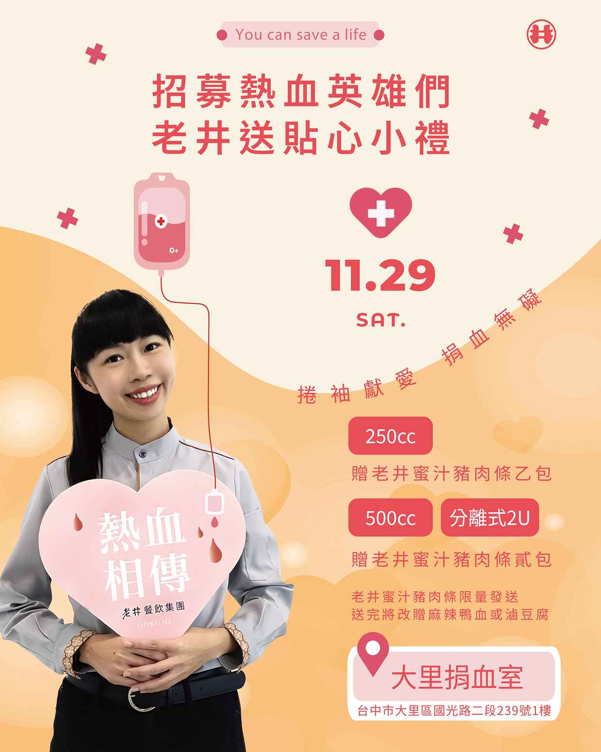 【活動地點】:大里捐血室(台中市大里區國光路二段239號1樓(耕讀園旁))