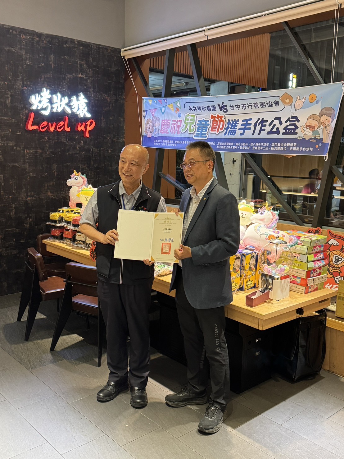 兒童節連假前夕,台中街頭洋溢著節慶氣息。為了讓弱勢家庭的孩子也能感受佳節溫暖,老井餐飲集團特別與台中行善團協會合作,於 4 月 2 日清明連假前夕,在旗下的「烤狀猿日式燒肉大里店」舉辦公益晚餐盛會,邀請由台中市社會局大里家庭福利中心所關懷的孩子們,在熱門用餐時段共享美味燒肉。