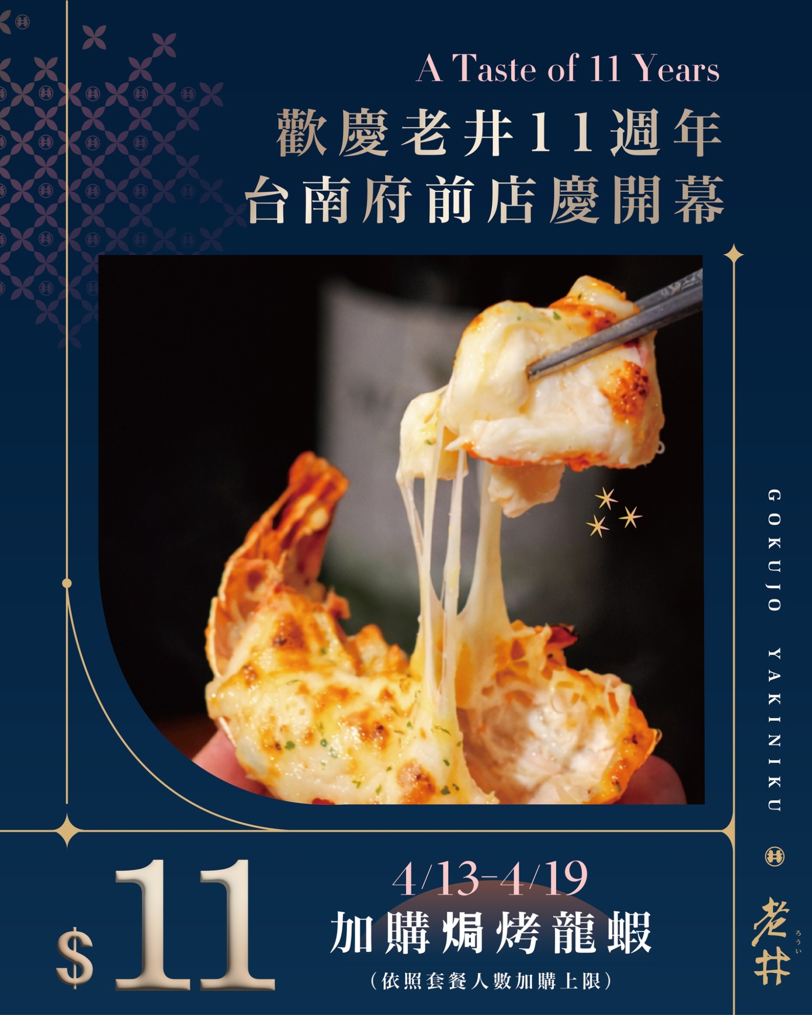 老井11週年,台南府前店開幕限定套餐加購11元升級「焗烤龍蝦」