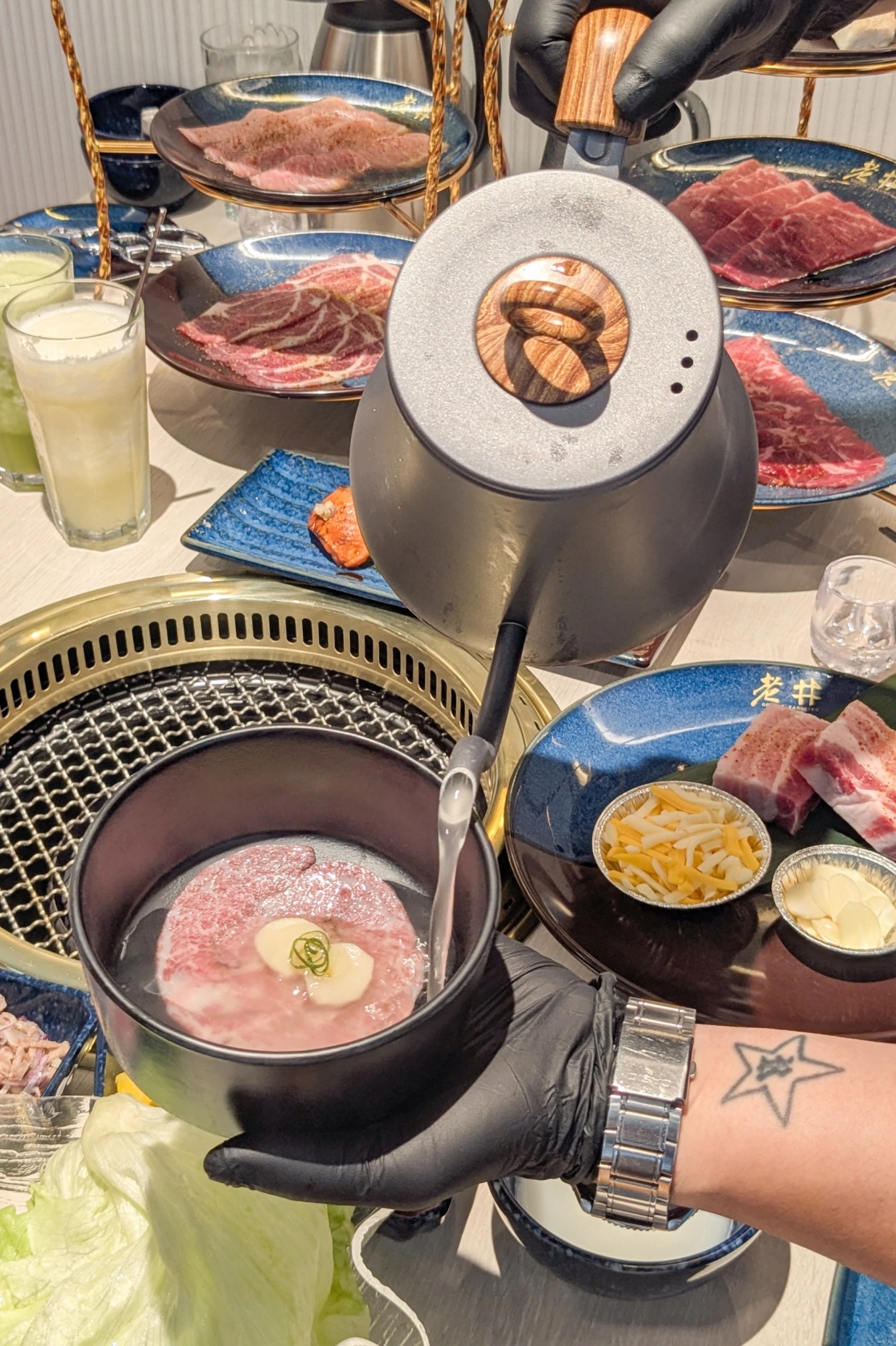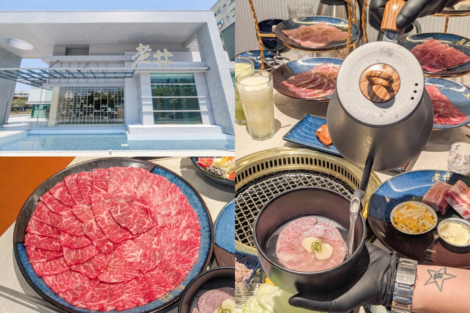 為了歡慶南部首店開幕,老井燒肉也特別以南部飲食文化為靈感研發「台南府前限定套餐」,打造台南限定菜色,雙人套餐價 2590 元、三人套餐價 3690 元。其中,「春川和牛牛肉湯」重新演繹台南經典小吃,以滾燙高湯現沖的方式,瞬間鎖住和牛的鮮甜。