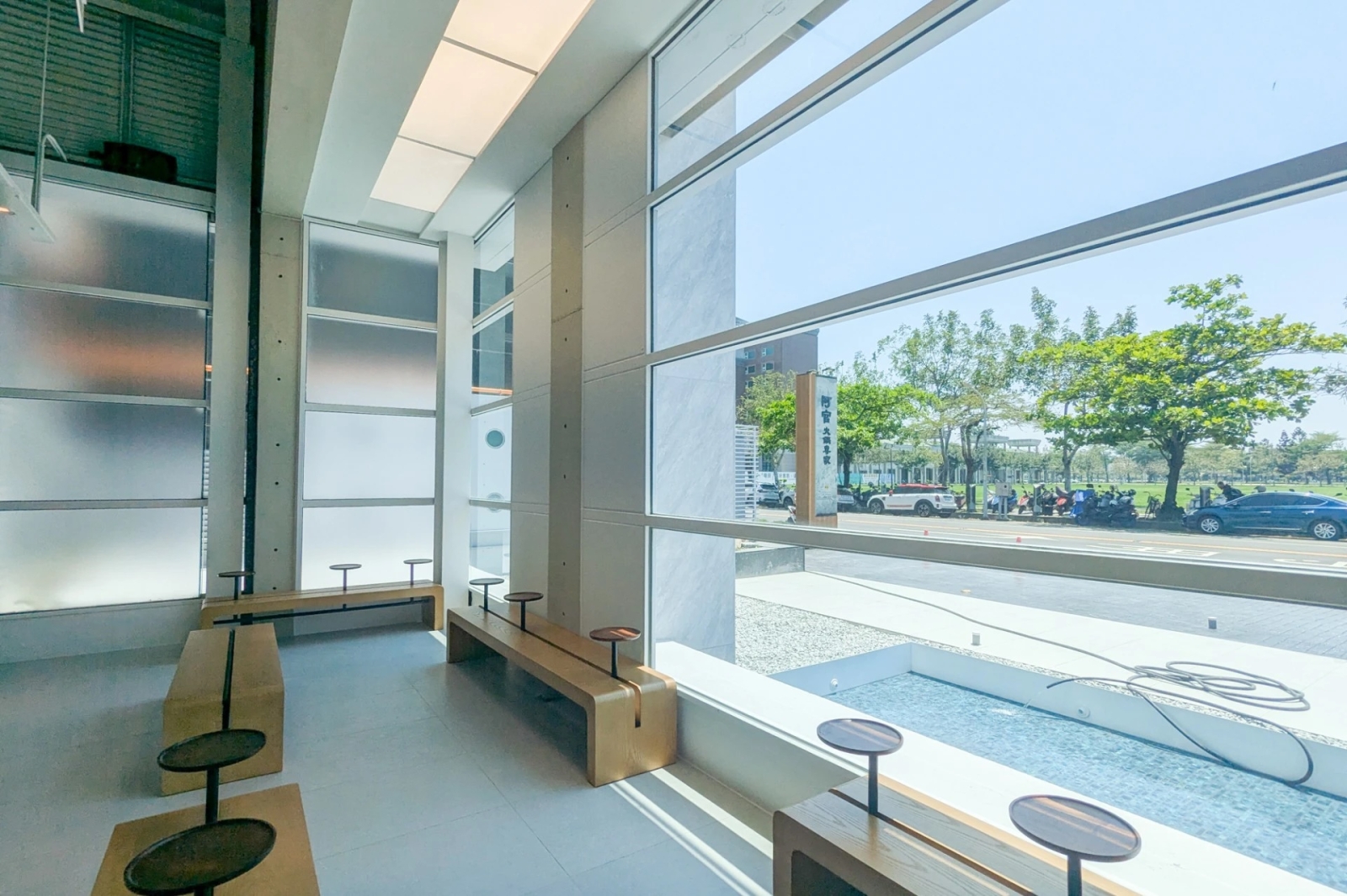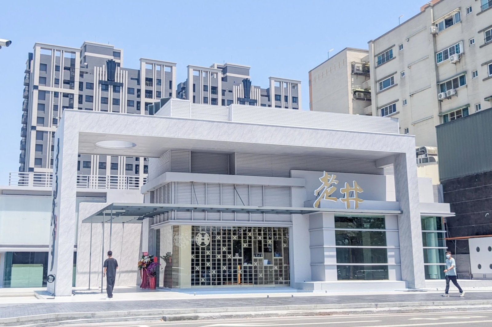 老井台南府前店位在安平區、鄰近台南市政府,前身是碳佐麻里府前店的舊址,建築以白色、玻璃等元素設計,打造通透明亮的空間,戶外水池在陽光照射下呈現波光粼粼的景象。台南府前店也是全台坪數最大、座位最多的分店,用餐區共規劃 45 個桌數,約可容納 280人,試營運約開放 200 多個座位,還特別打造候位區、梳化間,其中梳化間提供直髮器、乳液、香氛免費使用。